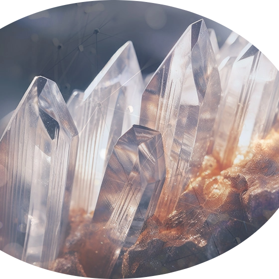 ケイ素は、硅素、シリコン、シリカ(二酸化珪素)、Siなどと表記されます。地球上では酸素について多い元素で、高純度なケイ素の化石が、皆さんもよく知るクリスタル(水晶)です。人体にとっては生命維持に欠かせない必須ミネラルで、免疫を活性化する物質でもあります。ケイ素はもともと、脳下垂体や松果体、あるいは骨・関節・皮膚・毛髪などとも関係し、体内にあるものですが、加齢とともに蓄積能力が衰えてしまいます。このケイ素を正しく身体に取り込めるよう、SOMA & Svarna シリーズの製品にも使用しています。