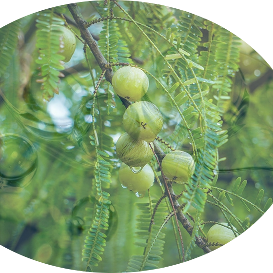 アーマラキー(アムラ)は、アーユルヴェーダでは強壮果実とされ、主に薬用、食用に用いられます。ビタミンCやポリフェノールが豊富で、“若返り剤(ラサーヤナ)”ともされる、インド原産のスーパーフルーツです。SOMA & Svarna シリーズの製品では、このアーマラキー(アンマロク果実エキスを、ピュアアーマラキーオイル100%として、Svarna Shampoo、Svarna Soapに使用しています。